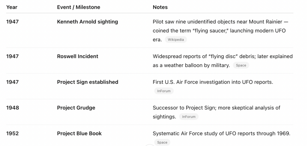 UFO Origin Story – just the facts, Ma’am…