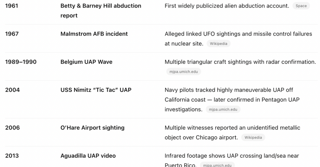 Major UFO Incidents in History