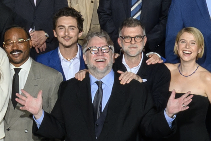 And there’s his boss on that film, Maestro Guillermo del Toro of the effervescent smile and frightening imagination down front and center. Flanked by Timothée Chalamet, who is the best actor arguably of his generation, yet alas not famous enough yet to avoid a spell check last name correction to Chalet… but give him time, after Marty Supreme’s Oscar run, even spell-check will have to pay homage to the Dune King.